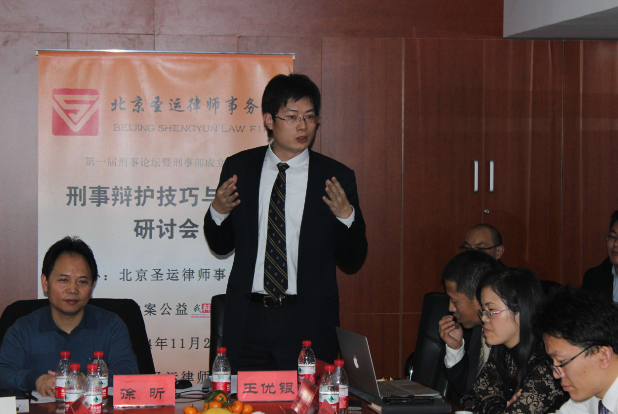 圣运所从创立以来,主要从事的业务领域是民告官领域,行政法领域,目前也应该是咱们国内最大的一个行政法的团队吧,我们做的案子应当说是全国除了西藏之外的其他30个省、自治区都涉及到民告官的案件,民告官,一开始大家感受基本一样,我做民告官第一起案子我就上瘾,感觉在法庭上我们可以去维护老百姓的利益,来去批评、指证贪官、行政机关它的违法,它的错误,以此来督促,用自己的微薄之力来促进中国依法执政的实现。当然在过程中会发现越来越多的行政机关,可能报公安机关,动用的是国家的刑事的强制力量来对公民的权利进行更深层次的剥夺。所以在徐教授的建议下,我们除了行政法团队之外,又把刑事团队建立起来,就是希望跟各位一样携起手来,共同的为国家的法治,为我们的法治做一点贡献。让我们的子孙,让我们的后代不是在生活在一个恐惧当中,不像我们现在空气不好,法治也不好,甚至安全感都没有。估计大多数刑辩律师都有这种感同身受,像前非著名律师,现在著名非律师李庄他的遭遇是一样的,实际上我很钦佩李庄,他为我们好多刑辩律师挨了刀挡了子弹。所以在这种情况下,我再次的对于各位专家和各位同仁,以及来旁听的,特别不好意思各位还在那站着,辛苦啊,还有特别感谢我们今天的各位媒体,感谢大家,请以后多多支持。