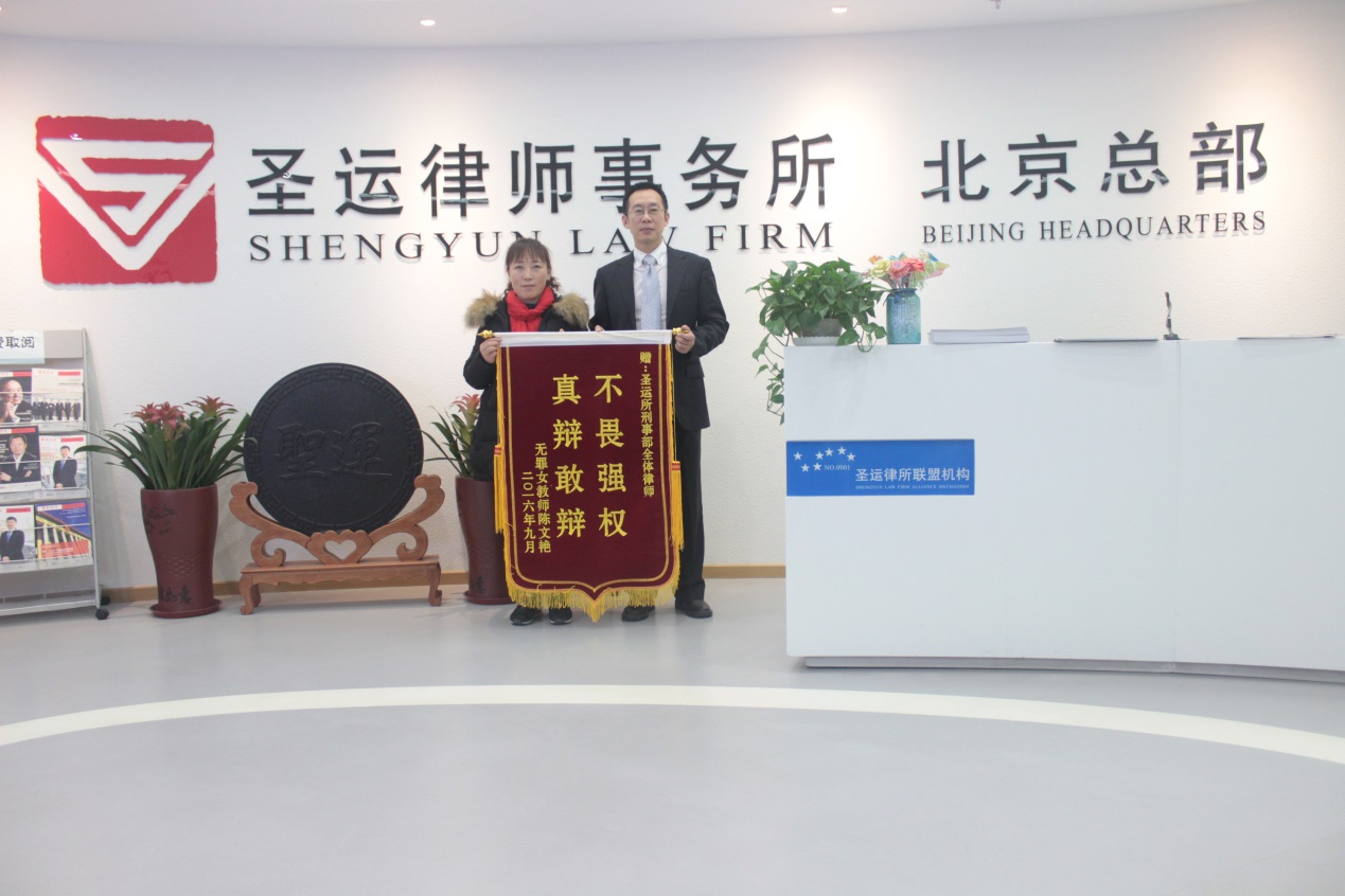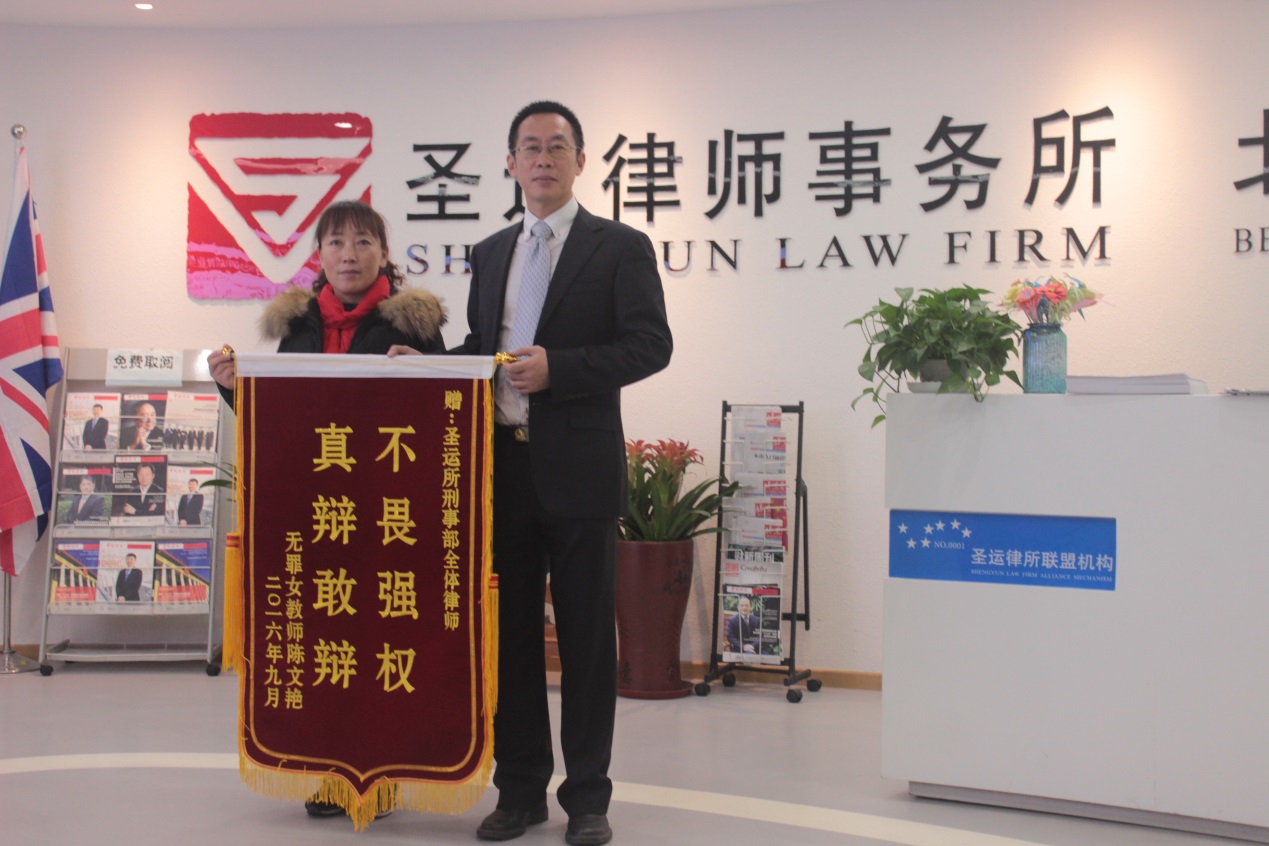 圣运律师事务所尹经奎律师成功为当事人洗脱冤情,荣获当事人赠送锦旗"不畏强权 真辩敢辩"锦旗。