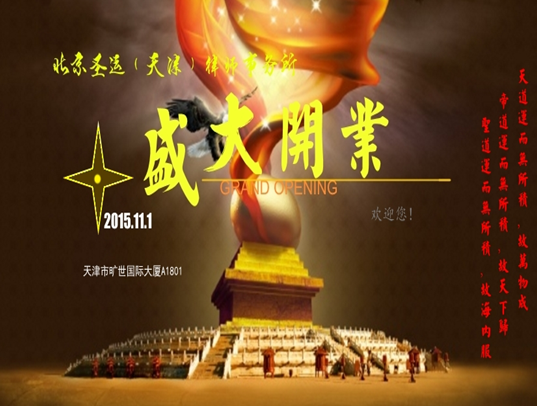 现今,北京圣运律师事务所天津分所正式揭牌成立,奋进的圣运人将孜孜以求,注重知识更新、强调团队合作、崇尚理论学习、由具有学者风范的高素质律师以不懈追求的精神及良好质量控制的实务操作规范,为国内外客户提供领域广泛的高水平法律服务。