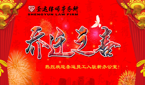 携全体员工,向广大新老客户和多年支持圣运律所的各界朋友们表示忠心的感谢。对在乔迁期间给各位客户工作带来的不便,我们深感歉意。希望得到大家一如既往的支持!