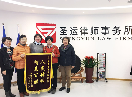 由圣运律师事务民商事部主任罗娟律师在代理当事人担保纠纷一案,目前该案得到北京市丰台区人民法院的支持,2016年11月9日,当事人来到圣运律师事务所亲自向罗娟律师赠送"人民律师 情系百姓"锦旗。