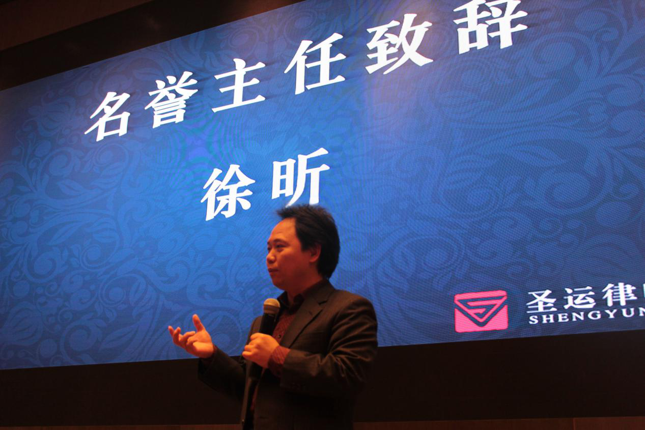 典礼上,作为圣运名誉主任的徐昕教授进行致辞,徐昕教授对圣运2015年所取得的成绩表示肯定,对圣运以后的发展也提出了宝贵的意见。