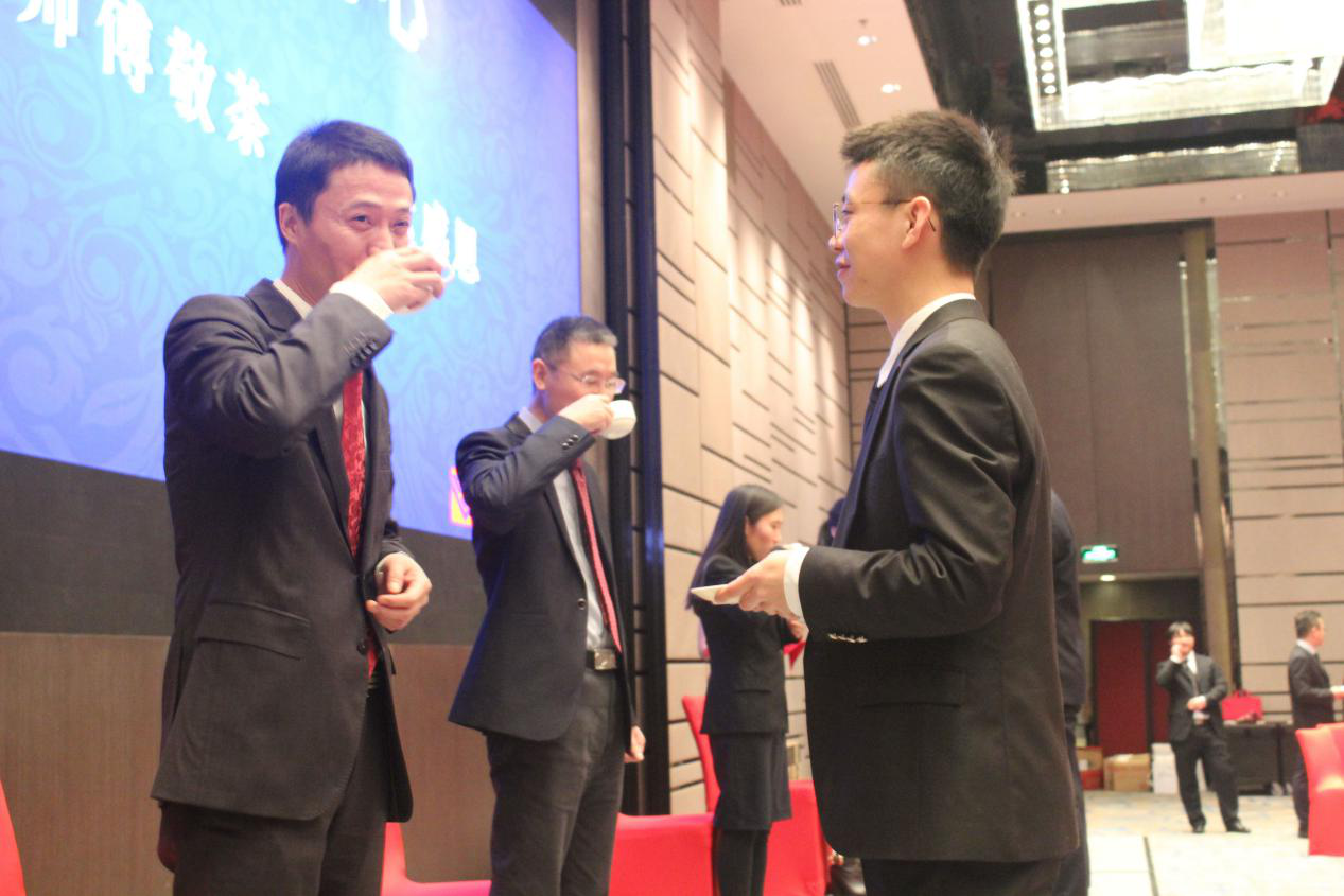 会间设有"感恩的心,向师父致敬"主题活动,老师是每个人成长路上的航灯,感恩师长也是圣运人一直坚守的传统美德,助理们向自己跟随的指导律师端茶致敬,会场上氛围温暖融融。