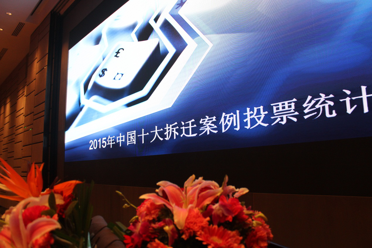 主任对2015年中国十大拆迁案例的评选结果进行揭晓,此次评选结果综合网络投票以及专家意见,评选出年度十大案例。
