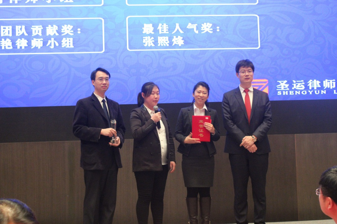 主任律师团队获得最佳团队奖的唐琦律师小组,用专注、专业、高效为圣运团队扬起了卓越旗帜,用强大的团队凝聚力为圣运宏业注入了活力。