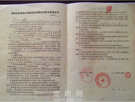 我是曹妃甸的郑庆军,我的合同所签署商铺位置是《商城北口西侧第一家》,7米开间,13米长度,上下均等都是91平米,共计273平米,实际盖成开间5.5米,长度8.6米,差我131米。并且开发商在我不知情的情况下在我的商铺东面加了一家卖碰碰凉的,(按当时签协议时的图纸,碰碰凉的位置本来是消防通道),这样我由第一家现变成了第二家,碰碰凉占据了我的有利地理位置,每年房租27万,为此我不同意回迁,开发商便背着我给租出去了,每年租金8万,开放商把钱装进自己的口袋。第一家和第二家房屋租金相差19万元,开发商就这样明着欺负我们,(开始,签字时拆迁办主任李志强口头承诺,一楼楼层高度是5.8米,现在改成4米,楼南面有外置楼梯,有8米宽道,二三楼可以单租,能通风采光,现在盖成封闭式的大棚,二三楼整个失去商业价值,并且二三楼扎出不到2米的消防通道,二三楼整个切除28平米,这28平米不但不给钱,还有99.6平米的公摊面积,按每平米12元收物业费,一年一处房的物业费50600元,照开发商这样算,我们的房子就别要了,直接给他们就行了。