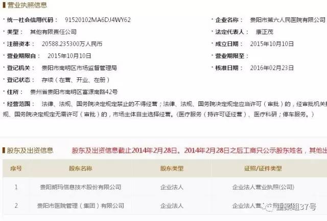2015年11月,上市公司朗玛信息曾发布公告,拟增资1.41亿元,获得贵阳六院66%股权。记者注意到,在工商信息中,朗玛信息与贵阳六院的多位高管名字相同。