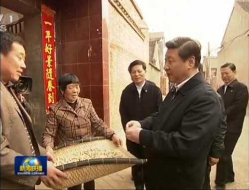 54岁的村民李国平,现场朗诵了一首自编的歌谣:"二月里龙抬头,现在农民真自由,青年男女创业去,红红火火闯九州……五月里五端阳,党的政策可传扬,种地不把公粮缴,补贴票子腰里装……"听着这发自内心的质朴话语,习近平带头鼓掌并称赞说,我们的群众对党的富民政策如数家珍,多么质朴、多么知道感恩啊。