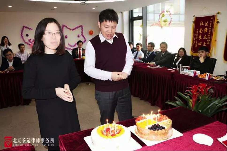 在表彰会后,圣运律师事务所还为1月份过生日的小伙伴举行了寿星庆生会,切蛋糕,送生日祝福,欢歌一片,其乐融融。![]()
