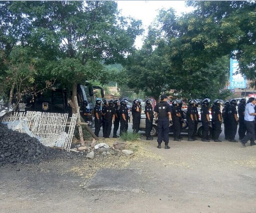 2015年8月26日上午7点,当地公安、特警、消防人员与城管执法人员、120急救车工作人员、法院法警与工作人员等400余人到达大河南组地块,现场还有40余辆机关车辆和5台大型挖掘机、4辆铲车与6辆翻斗车。到下午5点,街道龙源市城关大河南组多户村民承包地上的农作物与温室大棚被全部推倒铲平,百亩良田瞬间变成一片废墟。