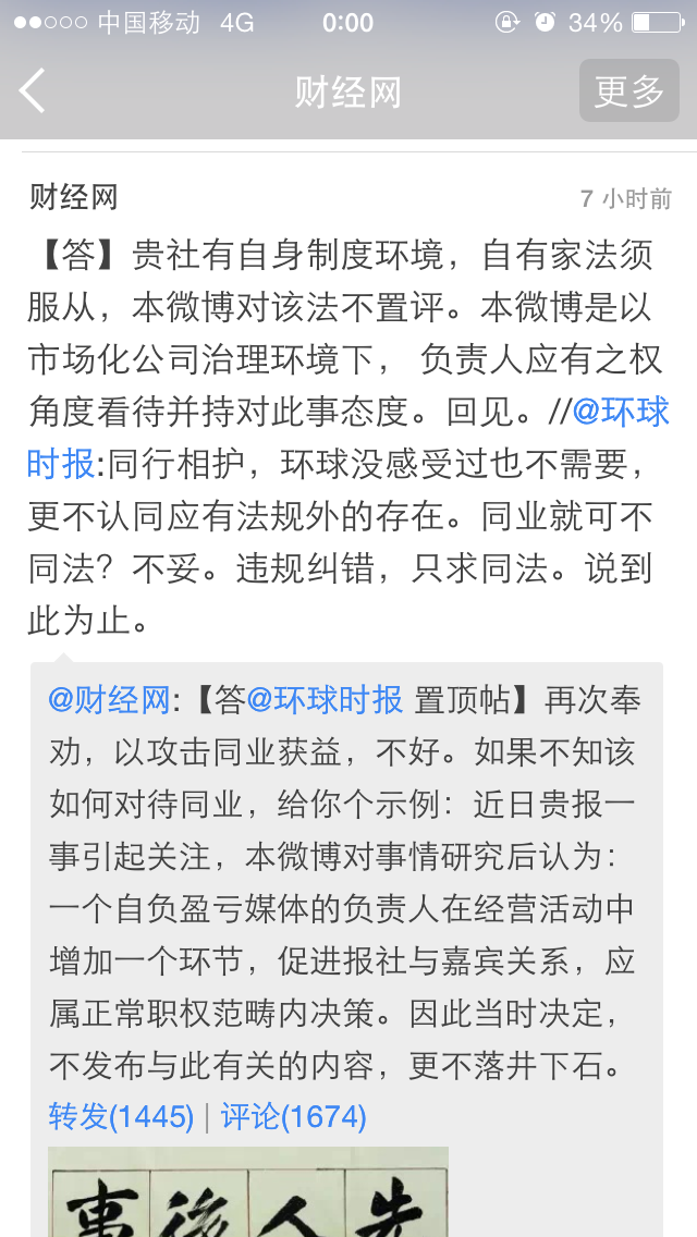 (图四)环球、财经两微博各自"生闷气、发牢骚"