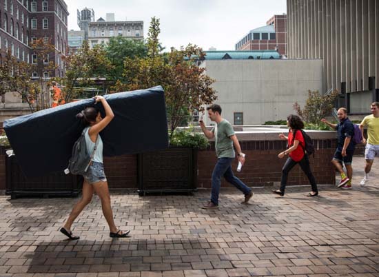 2013年,哥伦比亚大学一名女生Emma Sulkowicz向学校报案称被德国籍同学Nungesser在学校宿舍内强奸,但上报后检方称证据不足未对Nungesser提起指控,哥大校方也决定不对他采取纪律惩罚。Emma从此开始了扛着床垫上学的日子,用以抗议学校的行为,而后,学生组织在哥大的图书馆上方,用灯光打出:哥大纵容强奸犯的标语支持Emma。