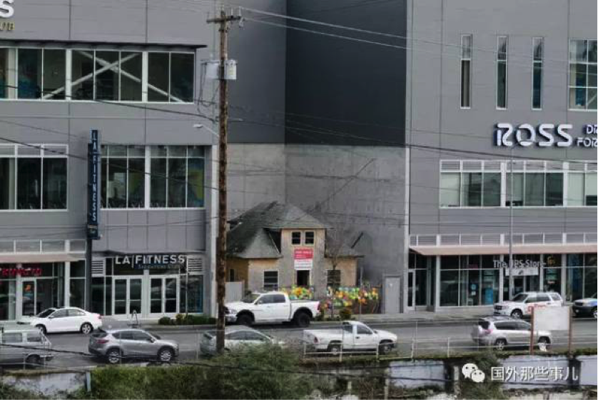 位于美国西雅图的一幢房子,这是一位八十多岁老奶奶的家。最初开发商想以一百万美元买下,但是被老奶奶拒绝了。而老奶奶表示自己不想搬离住了一辈子的地方,开发商就把商业楼建成了"凹"字型。