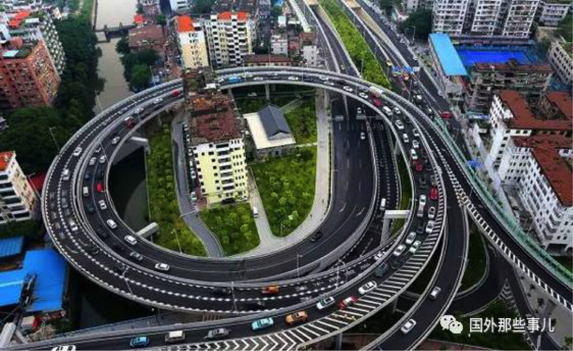 这是广州一座立交桥,两栋房子被围在中间,这里的居民由于没有和政府谈拢价格所以一直住着。