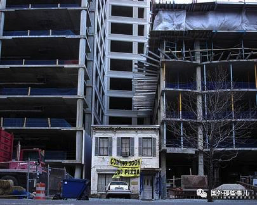 这里是美国华盛顿,中间的披萨店老板由于想自己开店,拒绝了开发商的收购,于是就变成了这样。