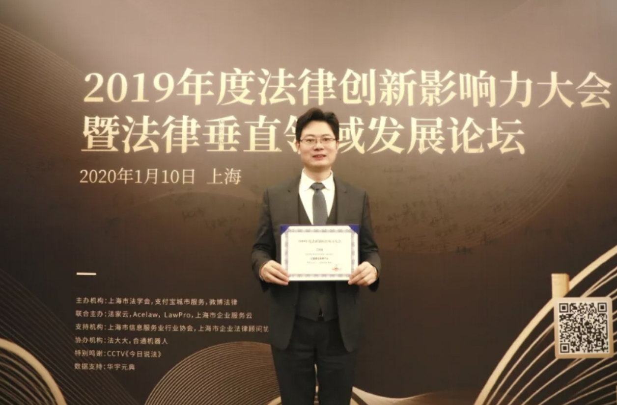 "2019年度法律创新影响力大会公益普法优秀个人称号"