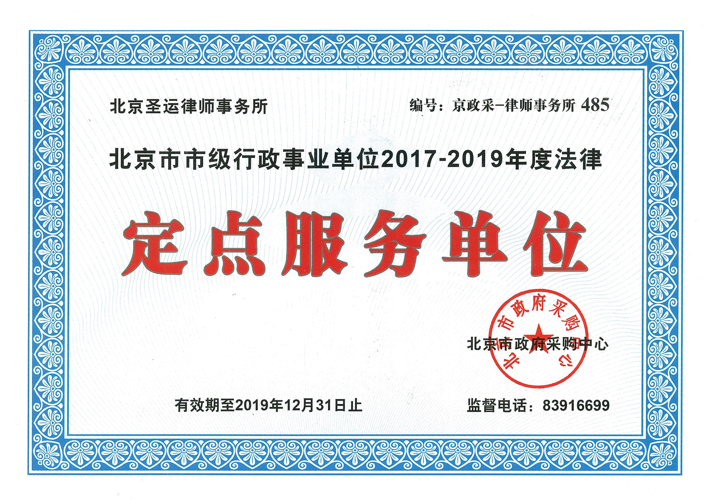 北京圣运律师事务所成功入选北京市市级行政事业单位2017-2019年度法律定点服务单位