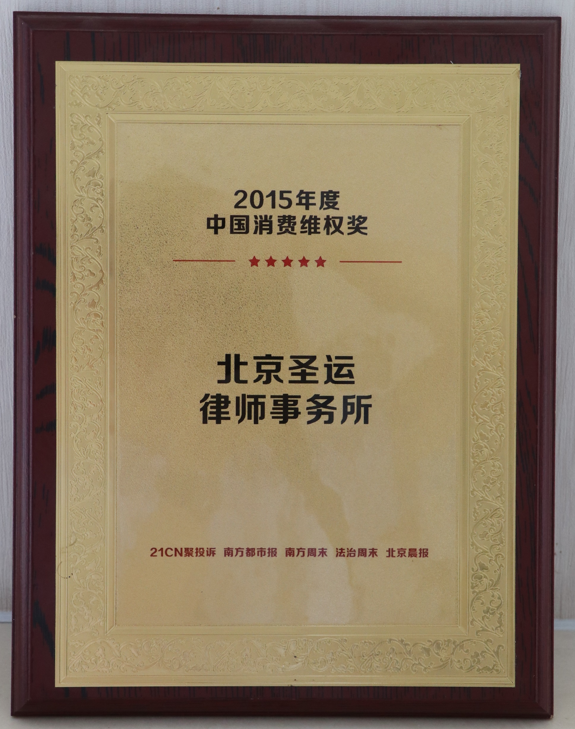 北京圣运律师事务所荣获2015年度"中国消费维权奖"