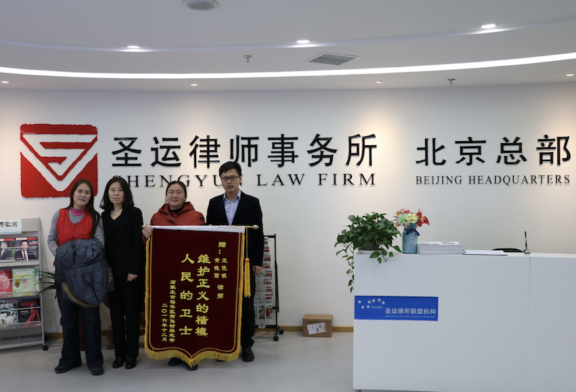 当事人赠锦旗,盛赞圣运律师"专业精湛"