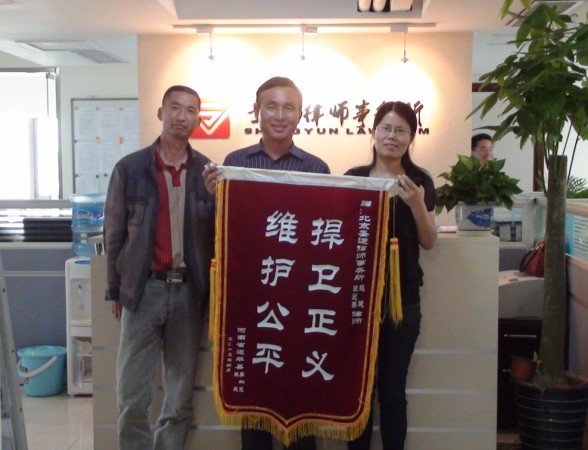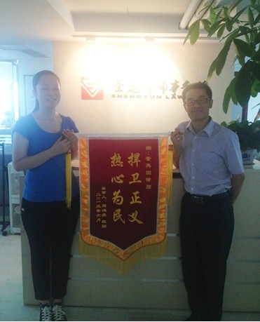 董再国律师获当事人赠送致谢锦旗