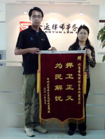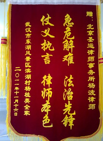 2011年12月5日杨波律师获赠锦旗