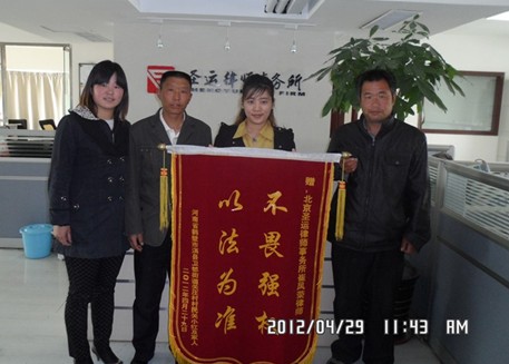 河北强拆案件圆满结案,委托人亲送锦旗致谢